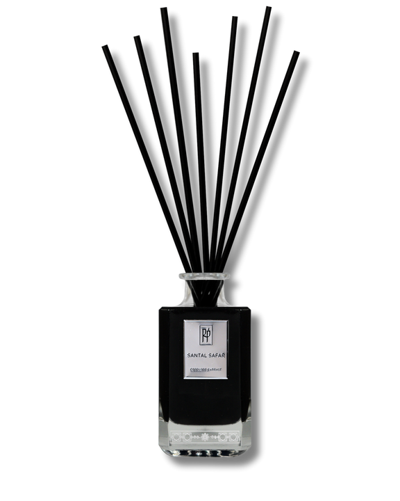 Santal Safar is crafted as an extrait-strength reed diffuser, designed for depth, longevity, and controlled diffusion.